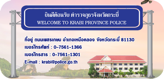 © ๒๕๖๓ สงวนลิขสิทธิ์ ตำรวจภูธรจังหวัดกระบี่